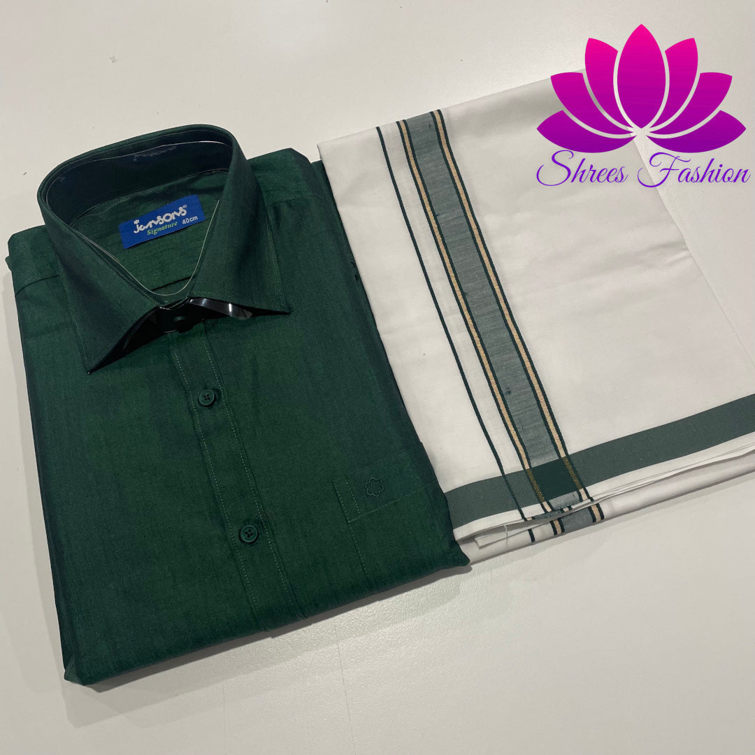 Gilded Opulence: Goldish Shirt Paired with Classic Veshti/Dhoti Ensemble