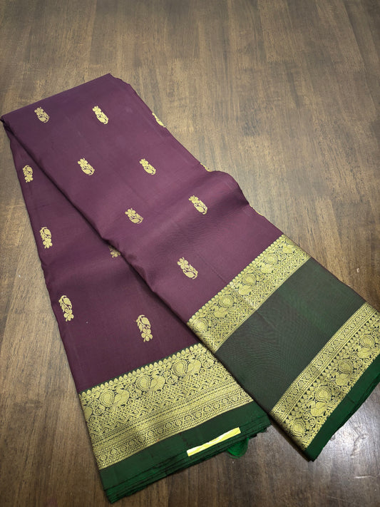 🌟 Regal Burgundy & Green Kanchipuram Pure Silk Saree with Grand Zari Work
