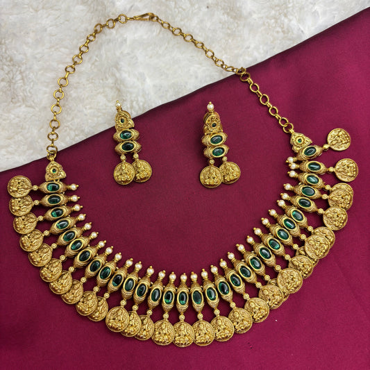 Verdant Radiance – Green Kemp Stone Necklace Set in Antique Finish