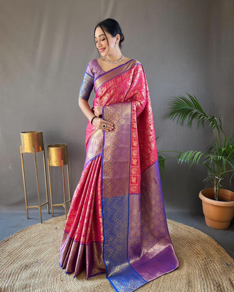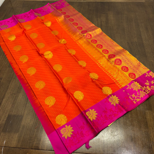 Radiant Orange and Magenta Kanchipuram Silk Saree