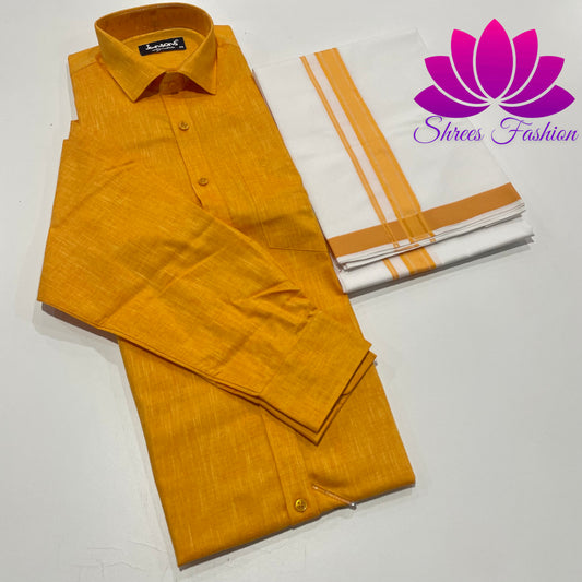 Sunlit Elegance: Yellow Shirt Paired with Classic Veshti/Dhoti Ensemble