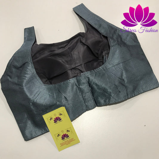 Navy Elegance: Raw Silk Sleeveless Navy Blue Ready-Made Blouse