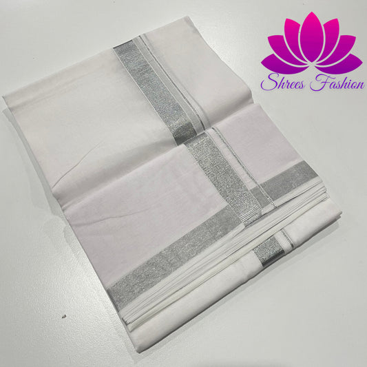 Silver Luminance: White Dhoti Adorned with Sublime Elegance
