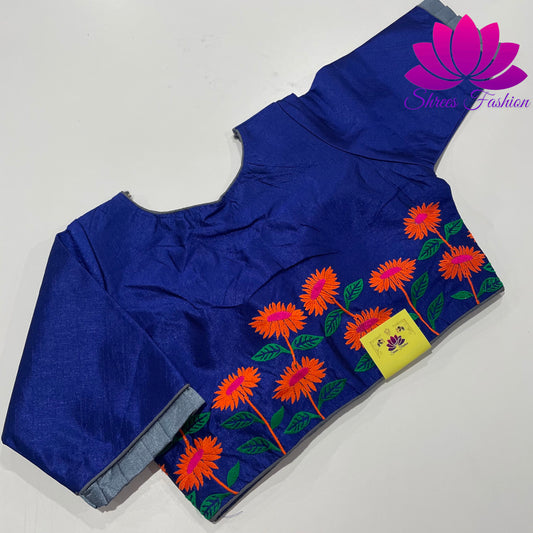 Sea Green Collar Neck Ready-Made Blouse with Gold Embroidery – Chic & Traditional Fusion for Sarees