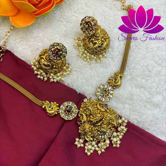 Serenity's Embrace: Matte Gold Temple Necklace with Exquisite Pendant"