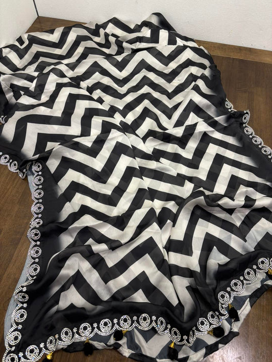 Shop Black & White Saree in Melbourne: Elegant Georgette Fashion
