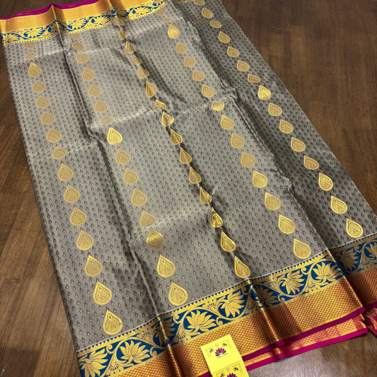 Chic Grey and Magenta Kanchipuram Silk Saree