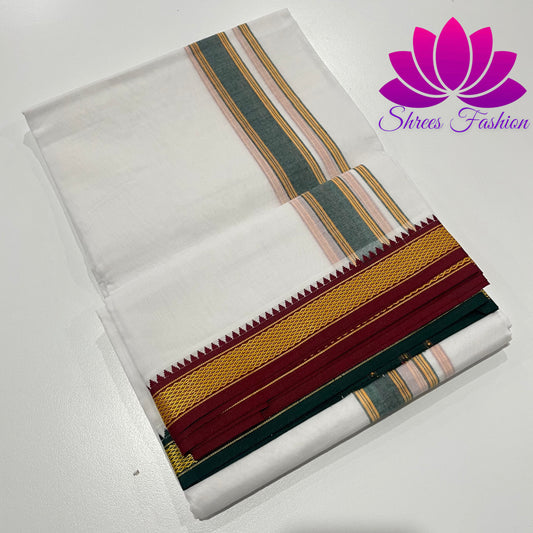 Borderline Beauty: Dhoti Adorned with Green and Maroon Elegance