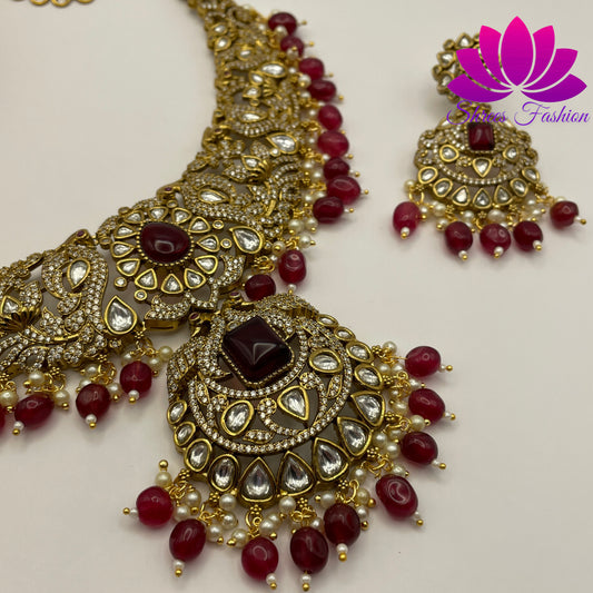 Burgundy Elegance: Victorian-Inspired Stone Necklace