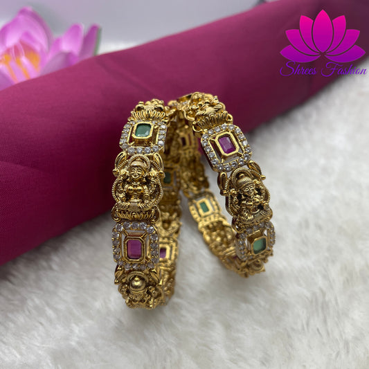 Divine Radiance: Exquisite Temple Design CZ Stones Matte Finish Bangles