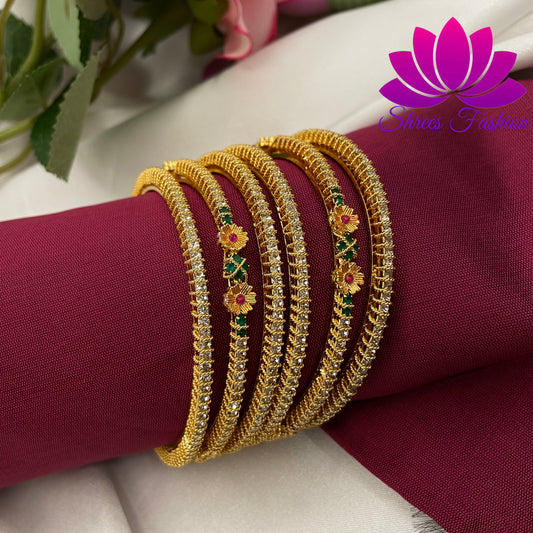 Gold Finish Bangles with AD Stones – Bridal & Festive Wear