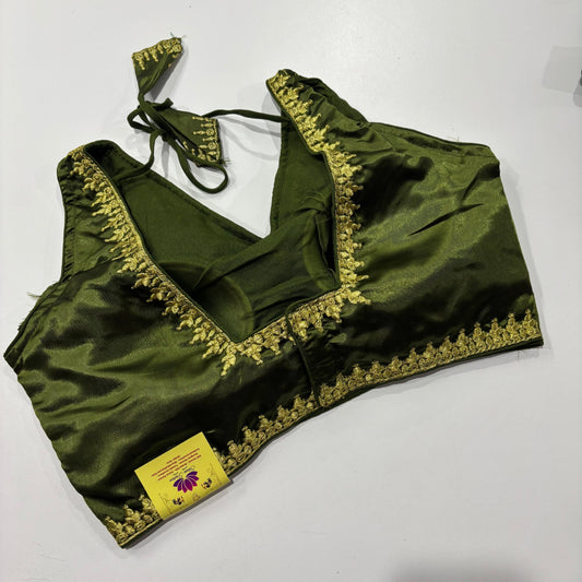 Olive Green Sleeveless Blouse – Draped Sleeve Detail for Festive Flair