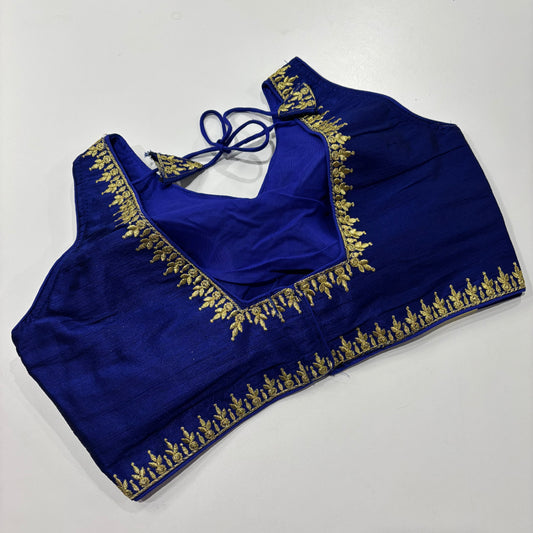 Dark Blue Designer Blouse – Gold Embroidery for Festive Glam
