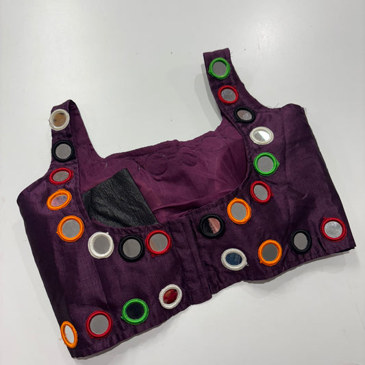 Plum Glam Blouse with Mirror Work & Sleeve Drape
