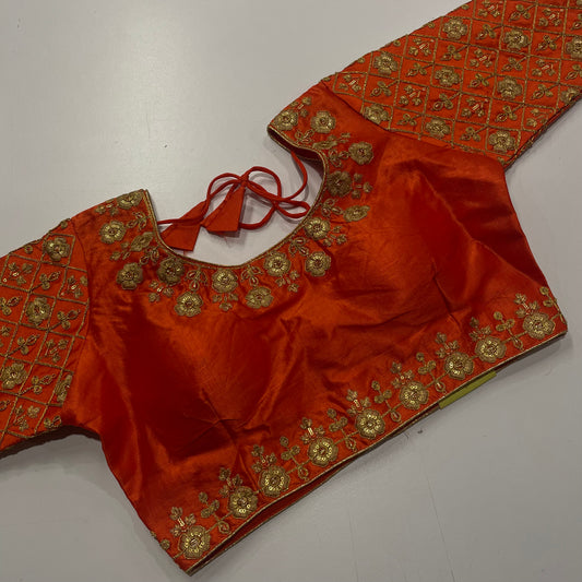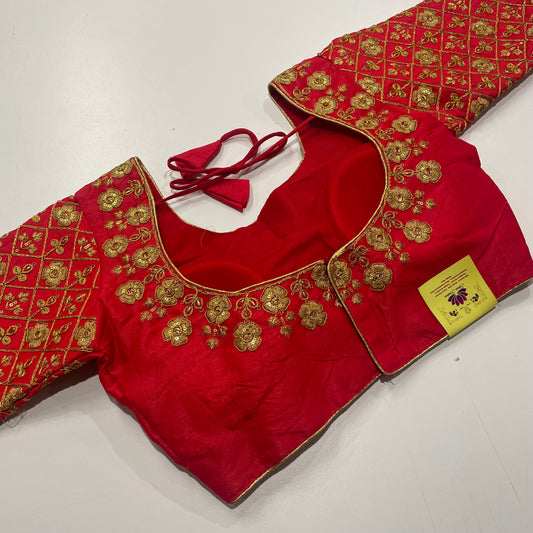 Red Ready-Made Blouse with Regal Gold Embroidery – Elegant Fit for Sarees & Lehengas
