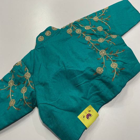Sea Green Collar Neck Ready-Made Blouse with Gold Embroidery – Chic & Traditional Fusion for Sarees