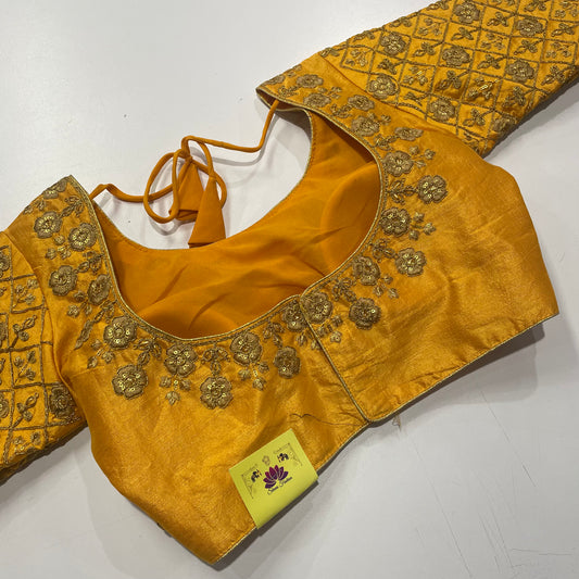 Designer Yellow Blouse with Heritage Gold Threadwork