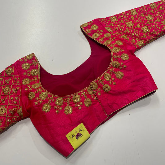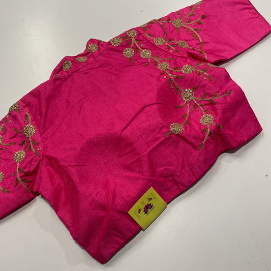 Rani Pink Ready-Made Blouse with Regal Gold Embroidery – Elegant Fit for Sarees & Lehengas