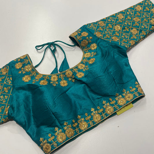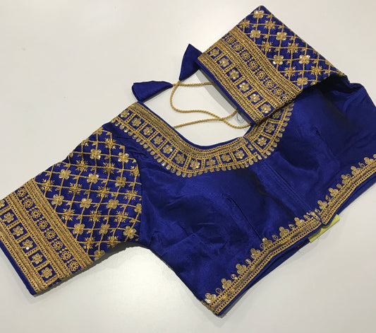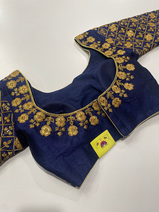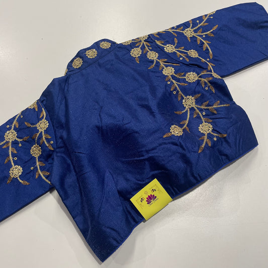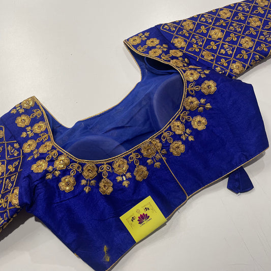 Royal Blue Designer Ready-Made Blouse with Gold Embroidery – Regal Elegance for Sarees & Festive Wear