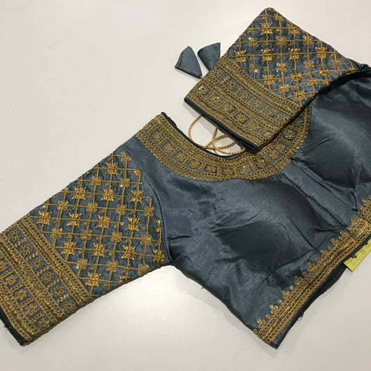 Grey Designer Ready-Made Blouse with Gold Embroidery – Subtle Sophistication for Sarees & Festive Wear