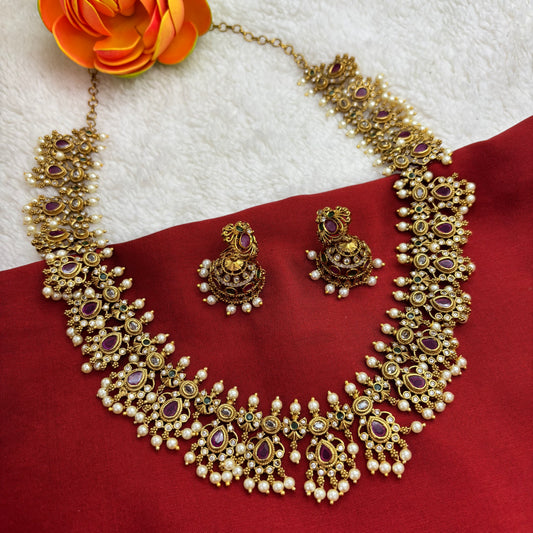 Multi Layers Pearl With Victorian Stones Jewellery Haram