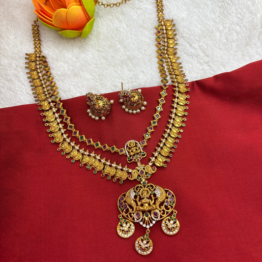 Matte Gold Temple Design Double Layer Kasu Mala – Traditional South Indian Elegance