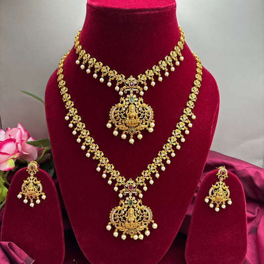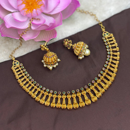 Regal Radiance – Matte Gold Finish Long Haram with Matching Jhumka Set