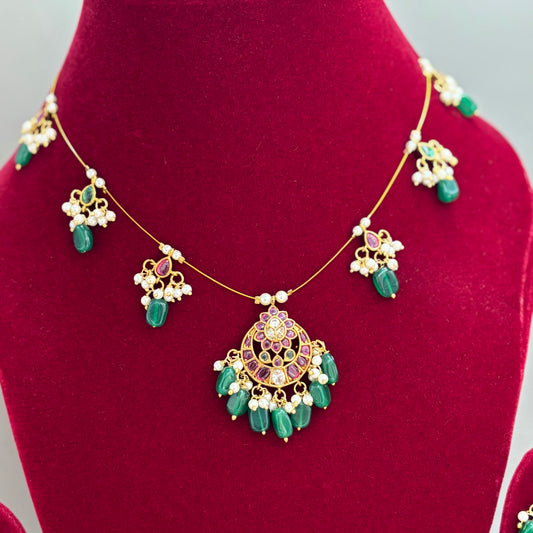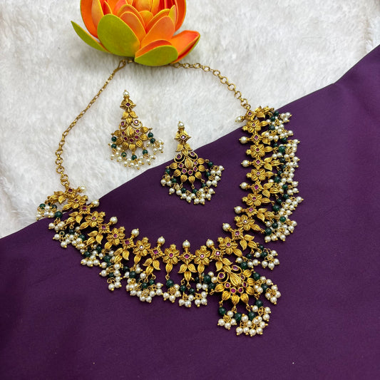 Timeless Grace – Premium Kuttapusalu Necklace Set with Green Beads