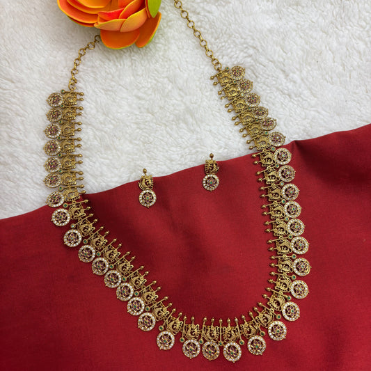 Regal Radiance: Matte Gold Kempu Stone Long Haram"