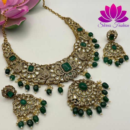 Emerald Enchantment: Victorian-Inspired Green Stone Necklace