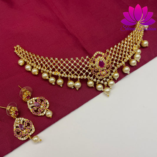 Pearlescent Elegance: CZ Stones Gold Finish Choker with Pearls