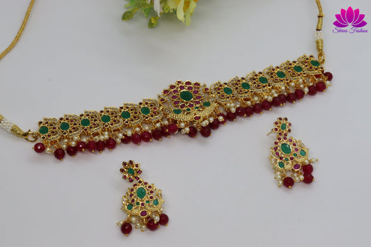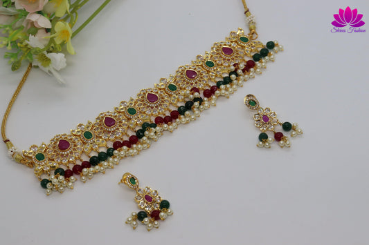Elegant Look Cubic Zirconia Green And Pink Stones Choker
