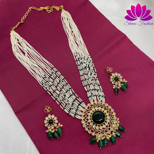 Multi Layers Pearl With Victorian Stones Jewellery Haram