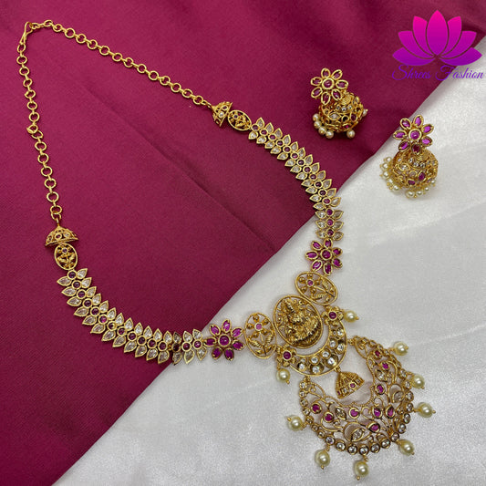 Antique Gold Finish Temple Design CZ Stones Long Haram
