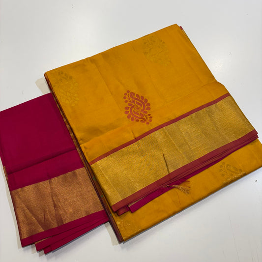 Sunshine & Silk: Yellow Kanchipuram Silk Saree with Rani Pink Pallu