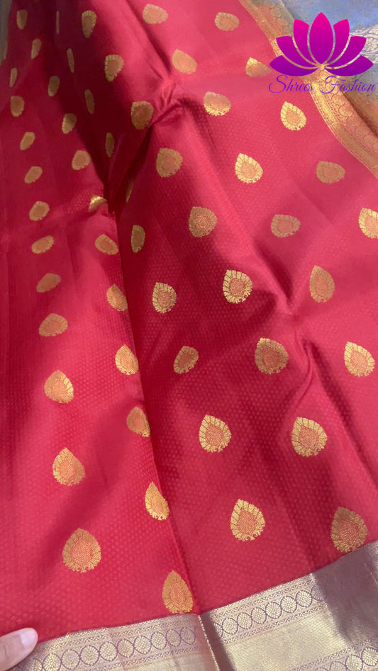 Red with Violet Colour Gold Zari Design Kanchipuram Silk Saree