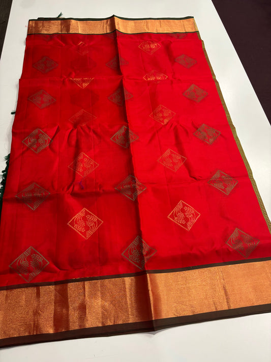 Festive Flame – Pure Kanchipuram Silk Saree in Red & Green
