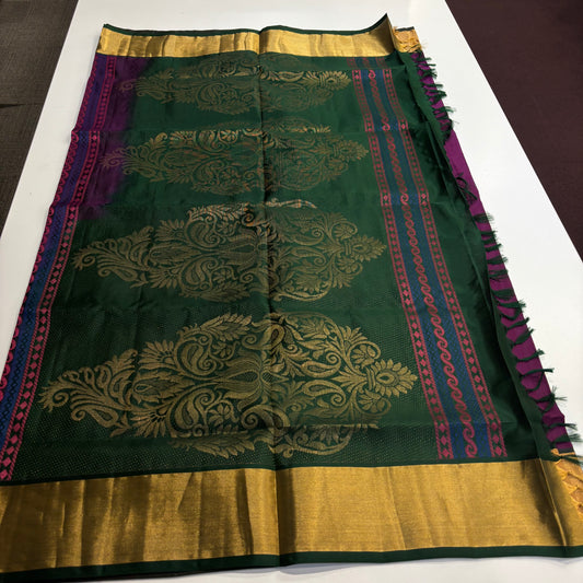 Royal Bloom – Pure Kanchipuram Silk Saree in Purple & Emerald Green