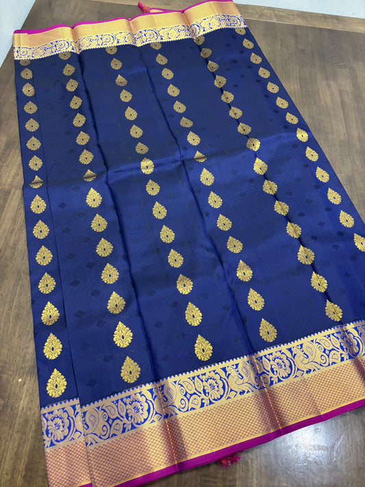 Dark Blue & Pink Kanchipuram Silk Saree with Elegant Zari Accents