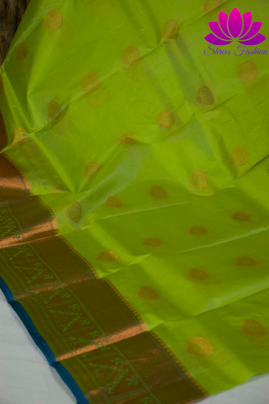 Pastel Green with Cyan| Kanchipuram Silk | Silk Mark Certified