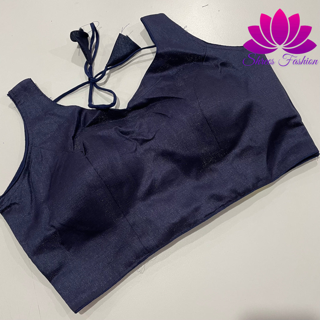Azure Whisper: Instant Navy Blue Raw Silk Blouse