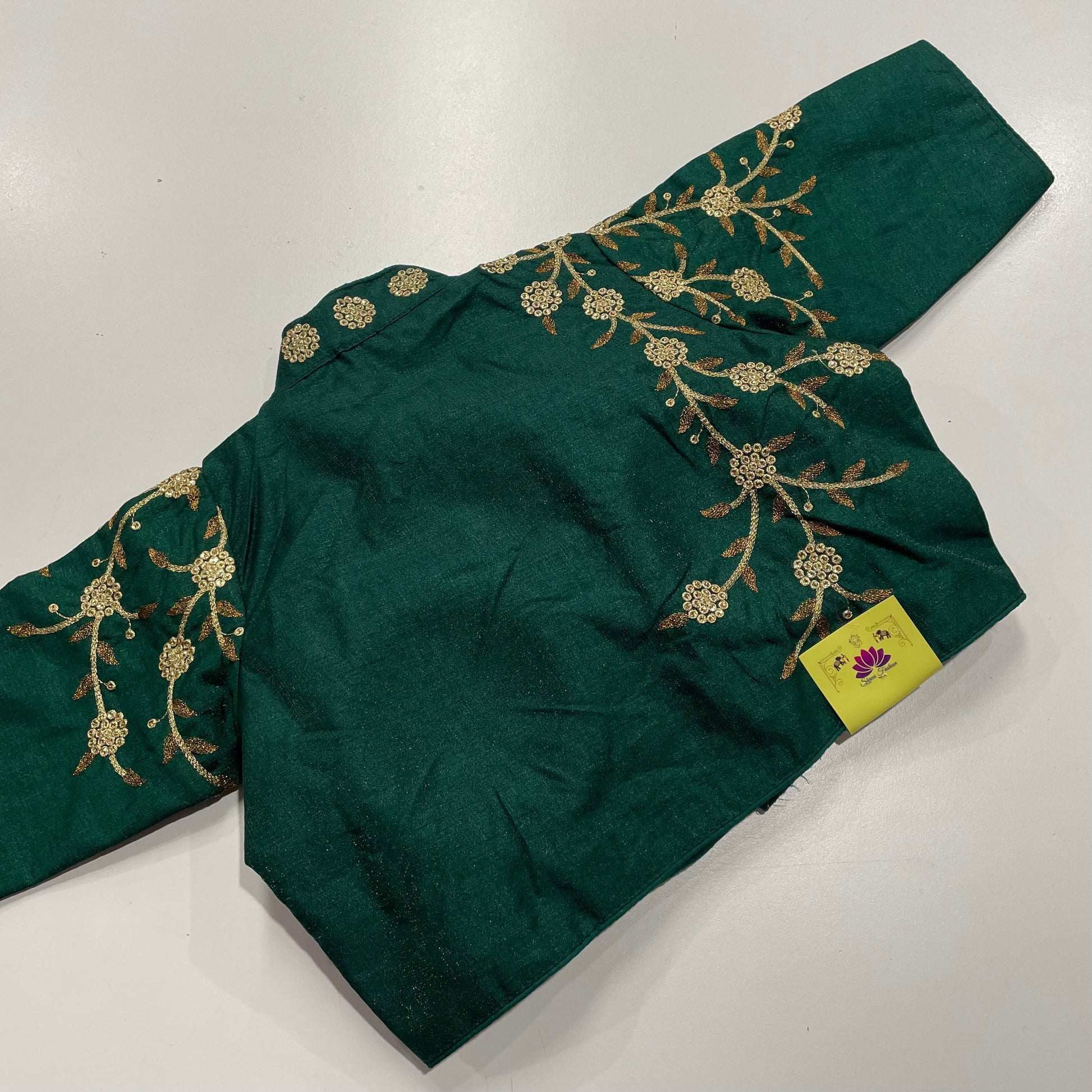 Bottle Green Collar Neck Ready-Made Blouse with Gold Embroidery – Elegant Fusion for Sarees & Festive Wear