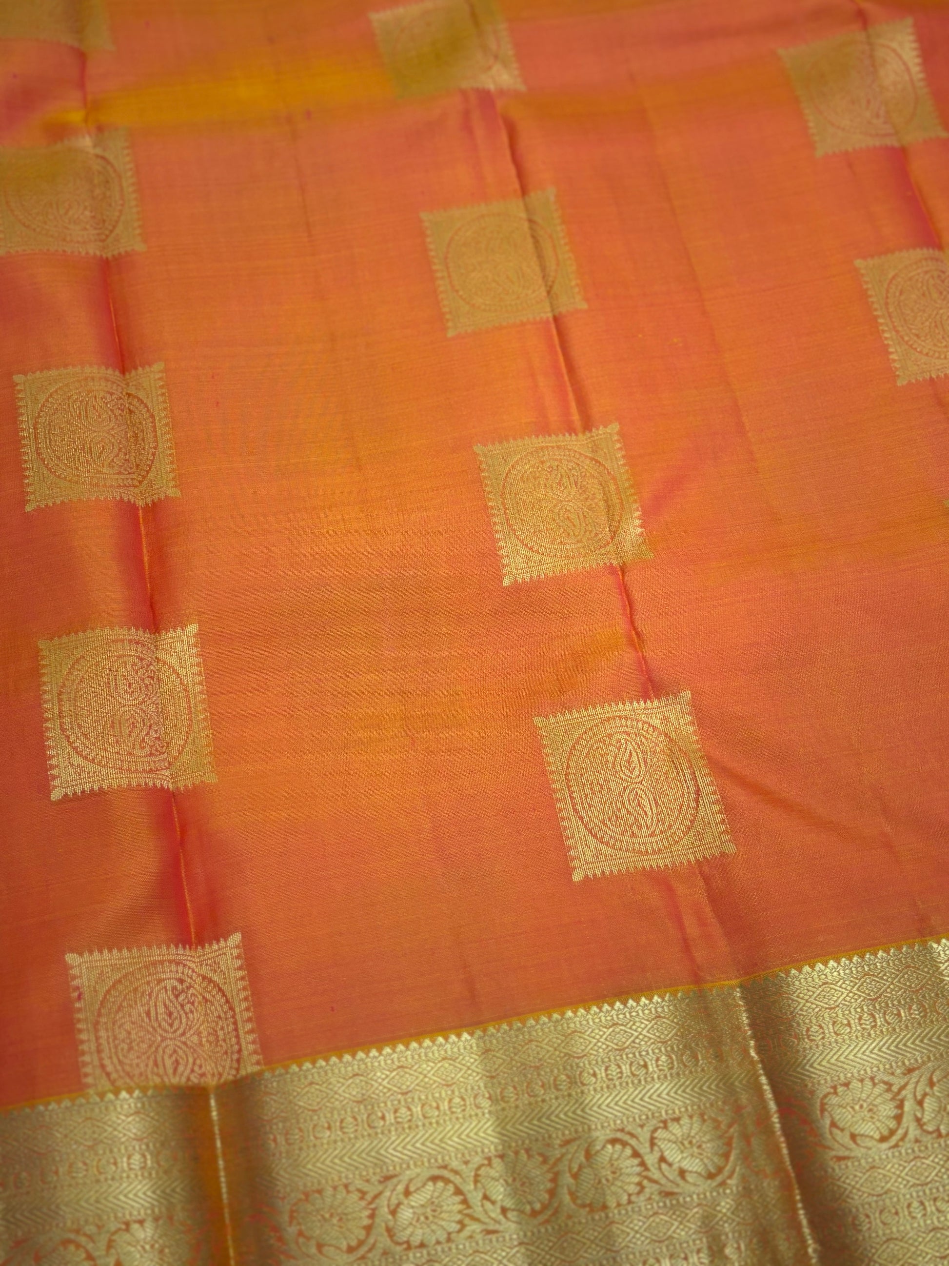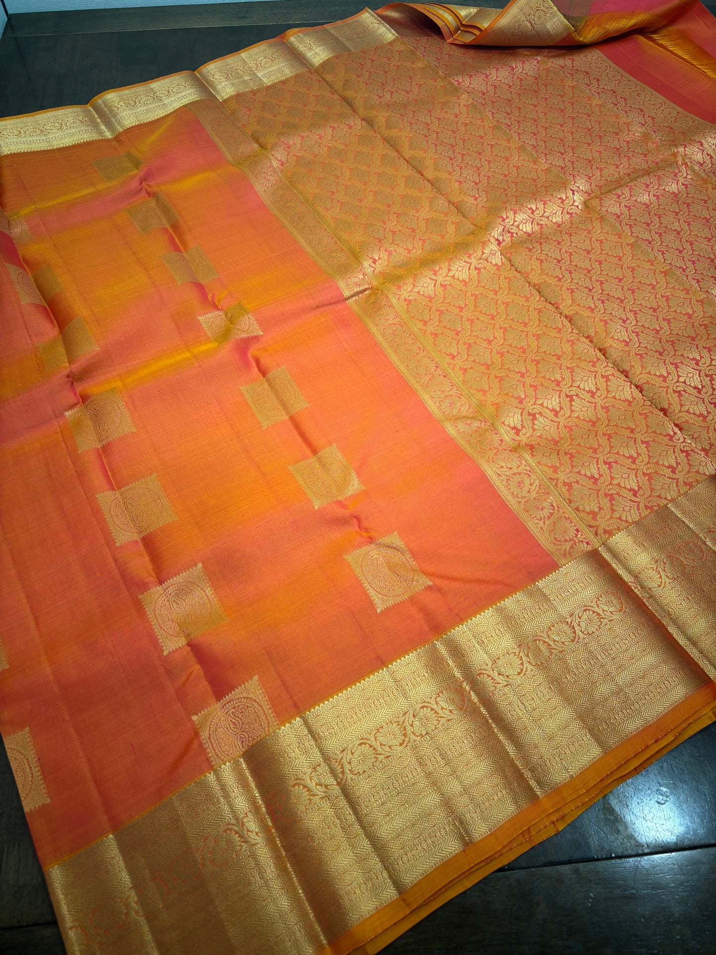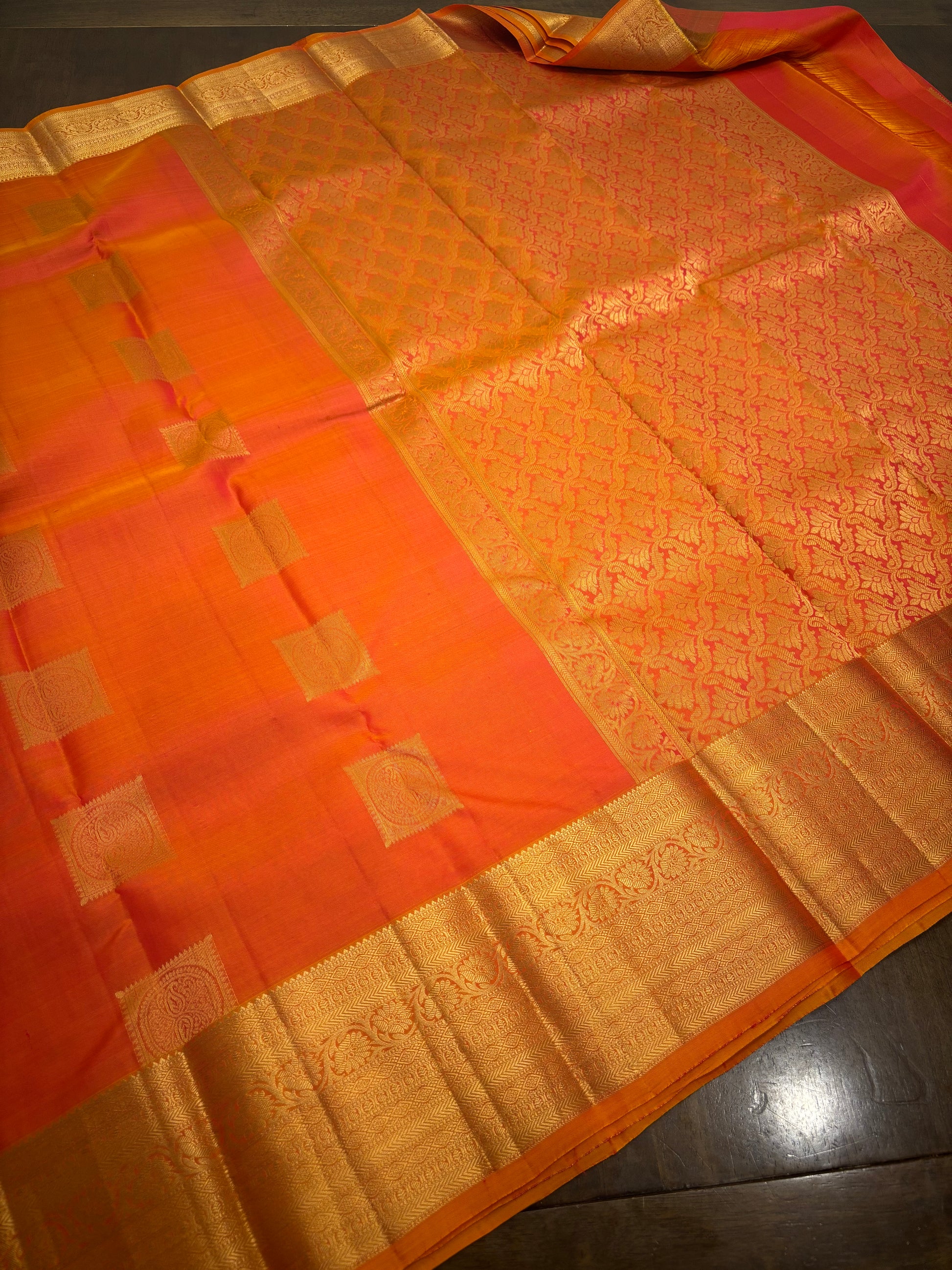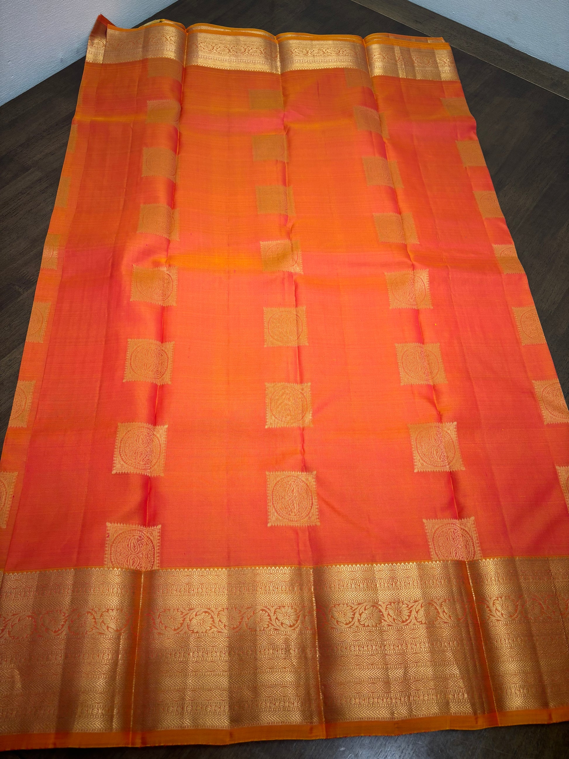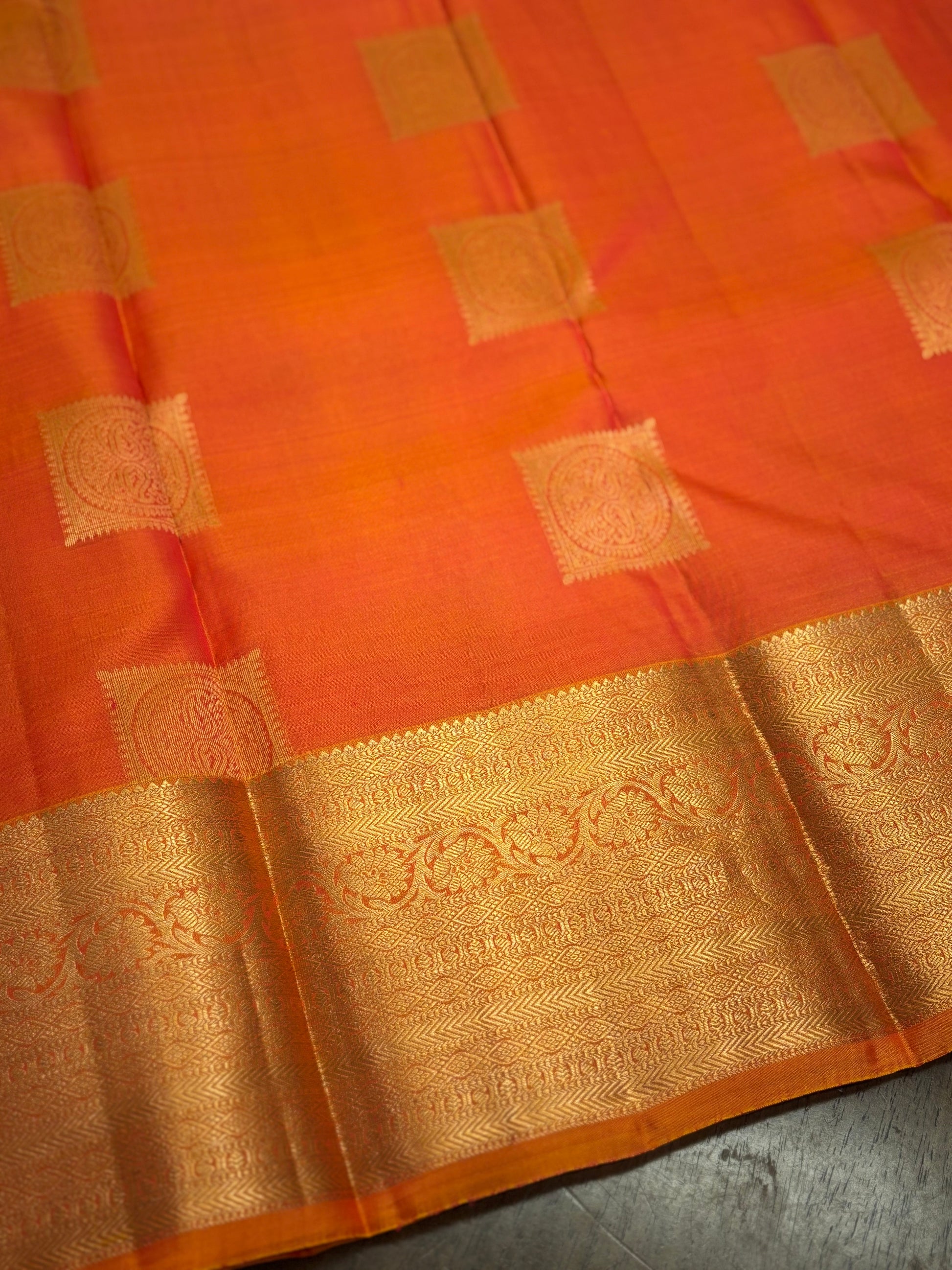 Radiant Orange Kanchipuram Silk Saree with Zari Border
