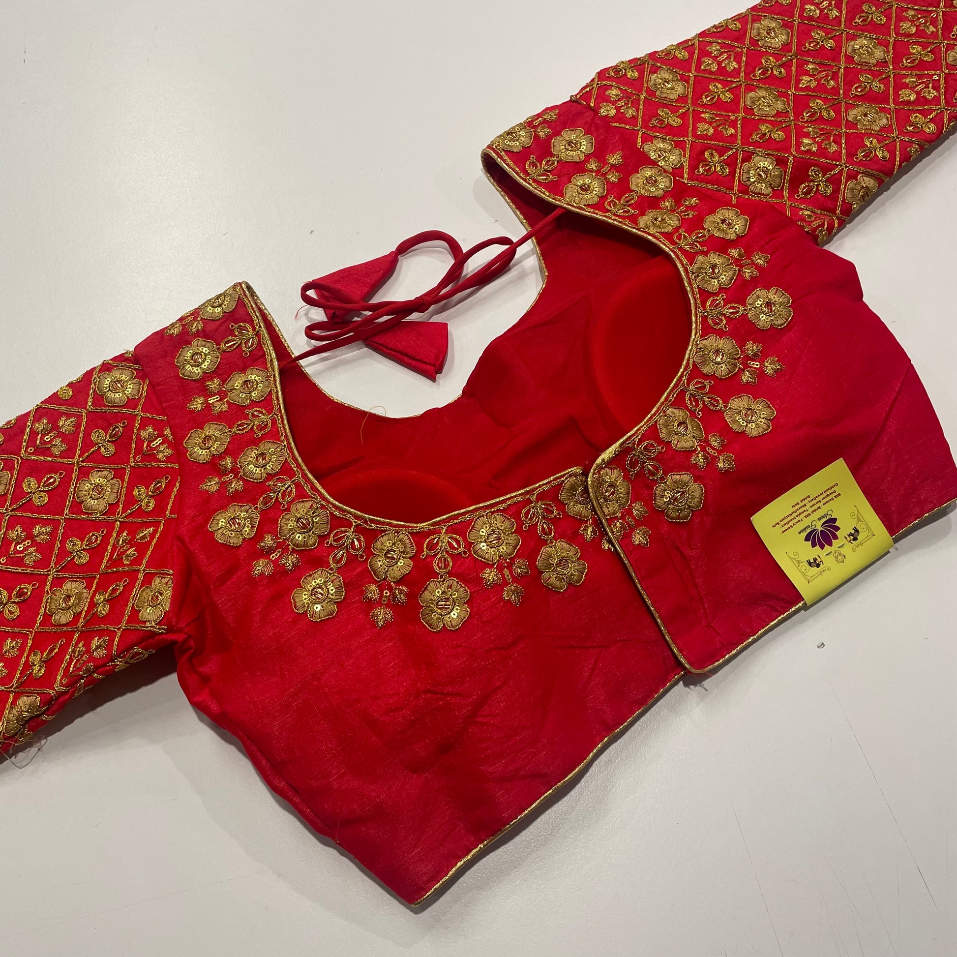 Red Ready-Made Blouse with Regal Gold Embroidery – Elegant Fit for Sarees & Lehengas
