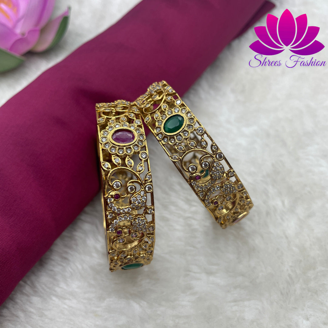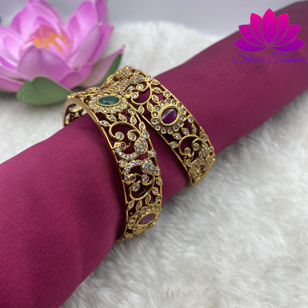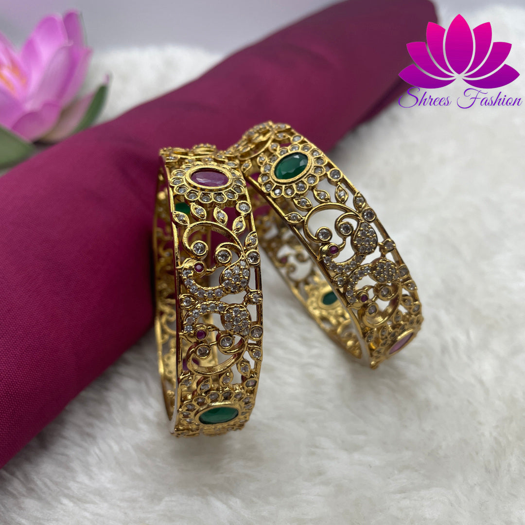 Elevate your accessory collection with bangles that tell a story of nature's magnificence and your unique sense of style. With our Peacock Design Matte Finish Bangles, carry the elegance of peacocks with you wherever you go, making a statement that is both bold and refined.